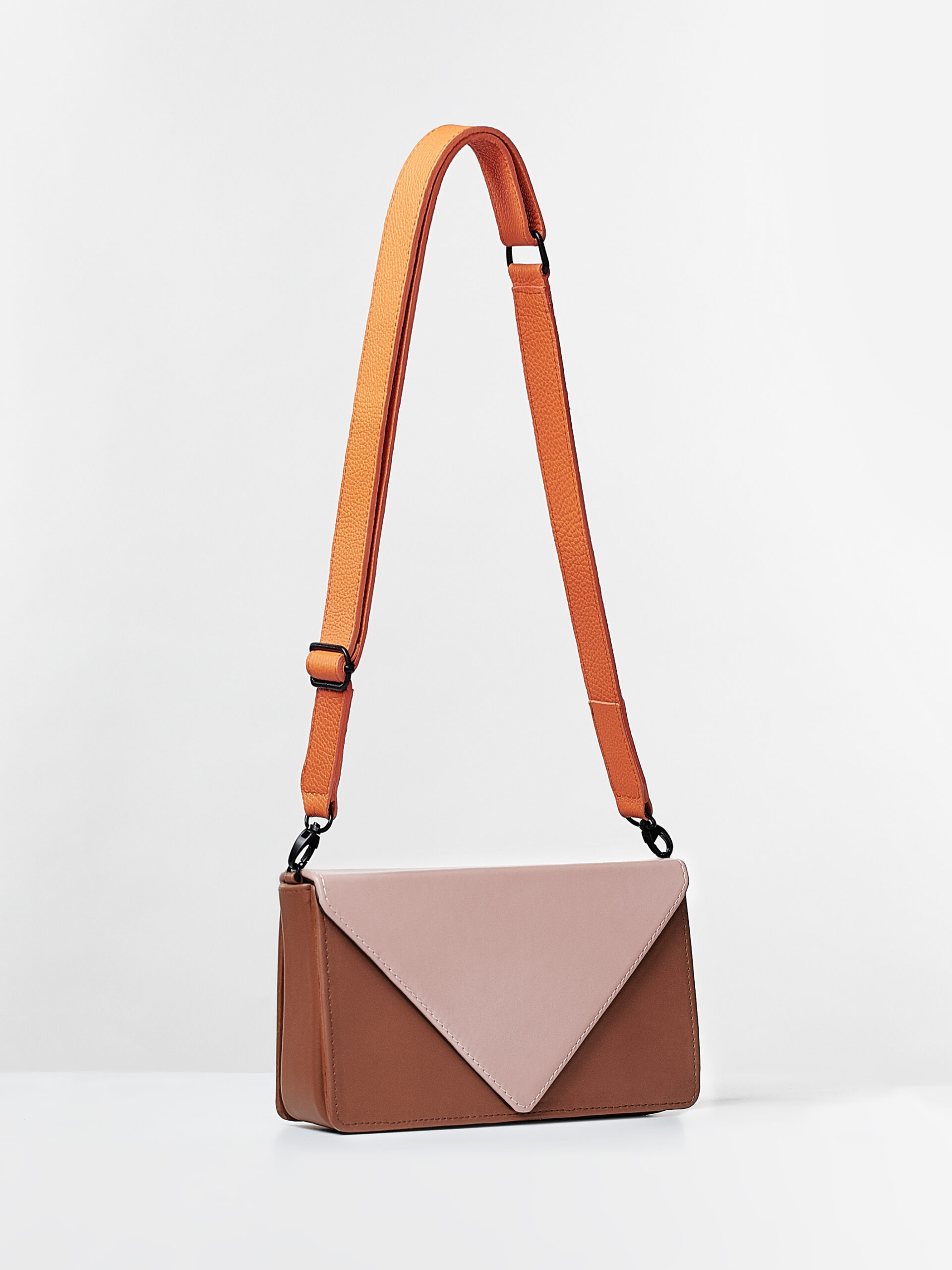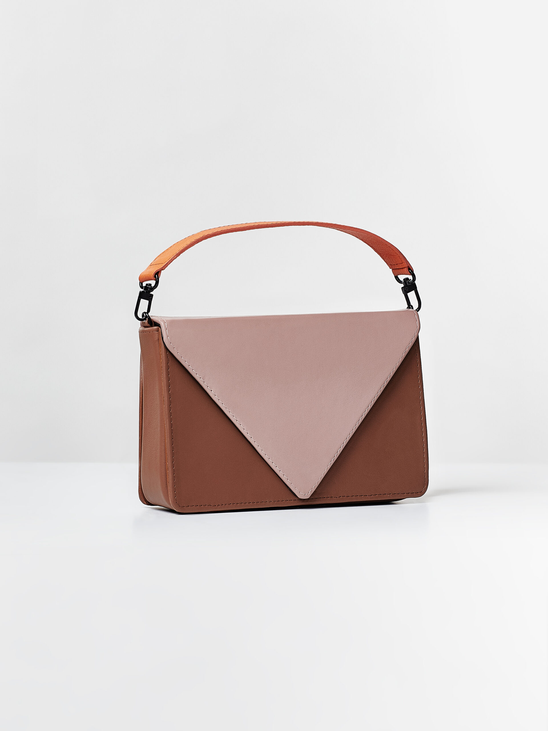 Stiff, classic style geometric bag with a magnet flap.              The handbag is handmade with high-quality leather.It has two straps, short and long with adjustable length.The interior is finished with a soft leather black mat lining with a stamped logo and three pockets.Thanks to two different handles and straps, it can be put on the shoulder and carry in the hand.    Can be also worn as a clutch.